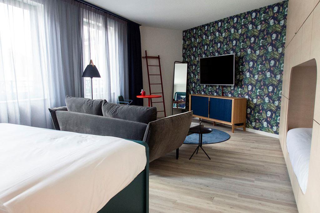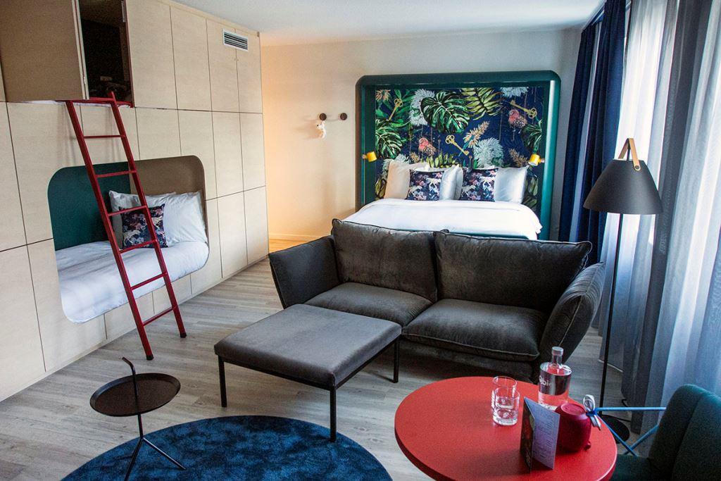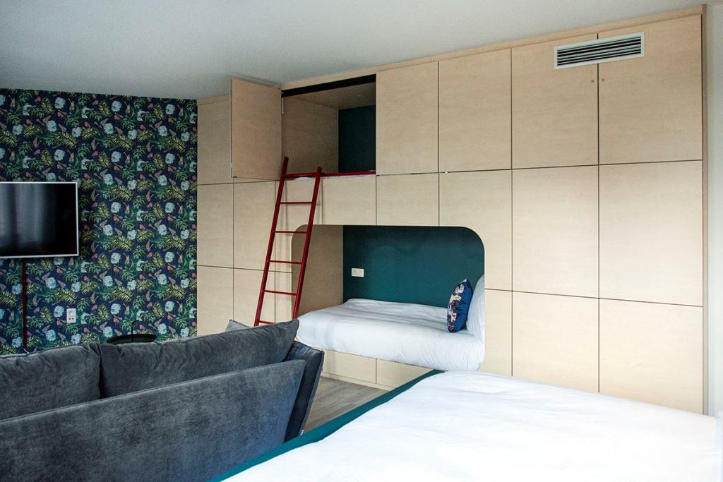 Les chambres sont agréables et spacieuses avec différents thèmes dont la bande dessinée avec, dans les chambres familiales, des alcôves pour les lits des enfants.