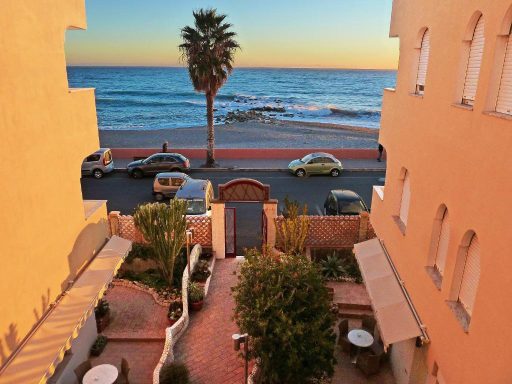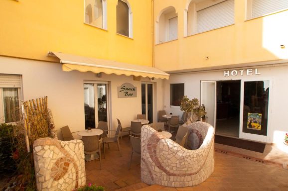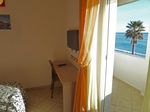 L’hôtel est un bâtiment moderne à deux minutes de la plage et offre une vue spectaculaire sur la côte.